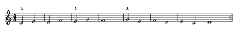 Para terminar esta primera publicación compartimos los siguientes 2 ejercicios de solfeo entonado. Estos ejercicios están diseñados para que pongas en práctica las habilidades aprendidas en los ejercicios previos en este post. Por lo tanto debes estudiarlos después de haber realizado correctamente dichos ejercicios (ejercicios del 1 al 7). ¡No hagas trampa, eh!